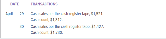 Southern Gift Shop, a retail business, started business on April 29, 20X1. It keeps a $300 change fund in its cash register. The cash receipts for the period from April 29 to April 30, 20X1, are shown below. Record the cash receipts on April 29 and April 30, 20X1, in a general journal. Start the general journal with page 1.