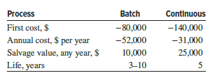 A company that manufactures clear PVC pipe is investigating the production options of batch and continuous processing. Estimated cash flows are: