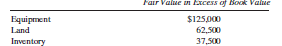 Fair Value u Excess of Book Value Equipment $125,000 Land 62,500 Inventory 37,500
