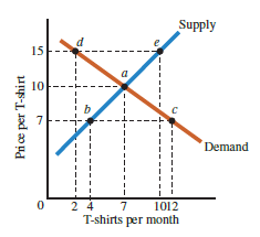 7. Interpreting the Graph. The figure below illustrates supply and demand curves for t-shirts.