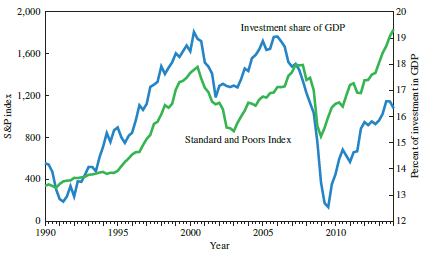 3.7. Stock Prices, Investment, and Causation. Figure 12.4 shows that from 1990 through 2013, investment spending followed the same trends as stock prices. Does this mean that movements in stock prices cause movements in investment spending? Give an alternative explanation for the fact that they move together. (Hint: Think of movements in real GDP.)