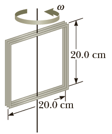 A 100-turn square wire coil of area 0.040 m2 rotates about a vertical axis at 1500 rev/min, as indicated in Figure P20.32. The horizontal component of Earthâs magnetic field at the location of the loop is 2.0 x 10-5 T. Calculate the maximum emf induced in the coil by Earthâs field.