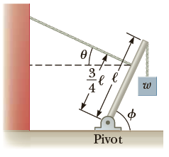 > Figure P8.29 shows a uniform beam of mass m pivoted at its lower end, with a horizontal spring attached between its top end and a vertical wall. The beam makes an angle u with the horizontal. Find expressions for (a) The distance d the spring is stretche