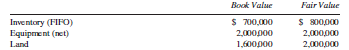 Book value Fair Value S 00,000 S 800,000 Inventory (FIFO) Equipment (net) 2,000000 2,000,000 Land 1,600000 2,000,000