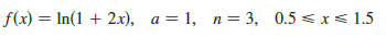 f(x) = In(1 + 2x), a = 1, n= 3, 0.5 < x< 1.5 %3D