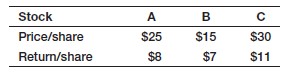 A business student has $2,500 available from a summer job and has identified three potential stocks in which to invest. The cost per share and expected return over the next 2 years is given in the table.