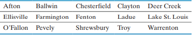 A cellular phone company is looking for ways to improve customer satisfaction. They want to select a simple random sample of four stores from their 15 franchises in which to conduct customer satisfaction surveys. Discuss the procedure you would use, and then use the procedure to select a simple random sample of size n = 4. The locations are as follows: