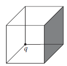 A charge q sits at the back corner of a cube, as shown in Fig. 2.17. What is the ï¬ux of E through the shaded side?