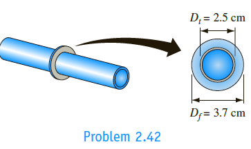 A circumferential fin of rectangular cross section, 3.7-cm OD and 0.3 cm thick, surrounds a 2.5-cm- diameter tube as shown below. The fin is constructed of mild steel. Air blowing over the fin produces a heat transfer coefficient of 28.4 W/m2 K. If the temperatures of the base of the fin and the air are 2608C and 388C, respectively, calculate the heat transfer rate from the fin.