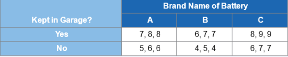 Brand Name of Battery Kept in Garage? A в Yes 7, 8, 8 6, 7,7 8, 9, 9 No 5, 6, 6 4, 5, 4 6, 7,7