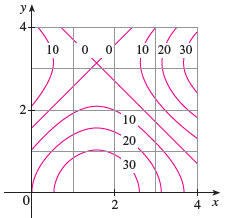 ![A contour map is shown for a function f on the square R = [0, 4] × [0, 4].