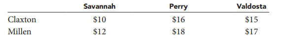 Assume the demand for cotton in Savannah, Perry, and Valdosta is 400, 300, and 450 tons, respectively.