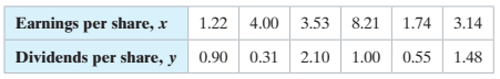 The earnings per share (in dollars) and the dividends per share (in dollars) for 6 companies in a recent year