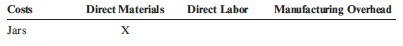 Costs Direct Materials Direct Labor Manufacturing Overhead Jars X