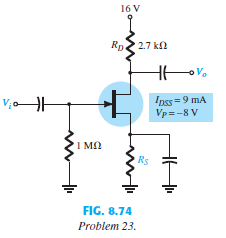 a. Find the value of RS to obtain a voltage gain of 2 for the network of Fig. 8.74 using rd = â â¦.