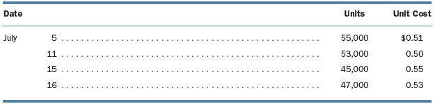 Cost of beginning inventory, July 1 . . . . . . . . . . . . . . . . . . . . . . . . . . . . . . . . . . . . . . . . $0.40 per unit