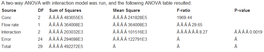 > Refer to the experiment in Exercise 7 . After collecting her data and analyzing the results, the student reports that the F-ratio for Power is 13.56 and the F-ratio for Time is 9.36. 1. What are the P-values? 2. What would you conclude? 3. What else abou