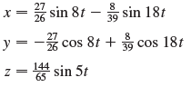27 x = sin 8t – sin 181 8 y = -% cos 8t + 39 cos 18t z = * sin 5t