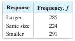 Response Frequency, f Larger 285 Same size 224 Smaller 291