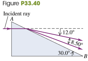 Figure P33.40 Incident ray A 12.0° 8.50° 30.0°. T B