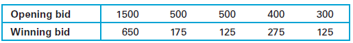 A nonprofit organization held a fund-raising auction attended by one of the authors of this text. He recorded the opening bids suggested by the auctioneer and the final winning bids for several items. The amounts (in dollars) are listed below.