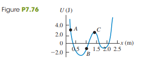 A particle moves along the x-axis while acted on by a single conservative force parallel to the x-axis. The force corresponds to the potential-energy function graphed in Fig. P7.76. The particle is released from rest at point A.
