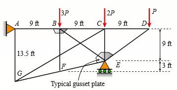3P 2P A 9 ft B 9ft C 9 ft Dv 9ft 13.5 ft 13 ft G Typical gusset plate