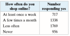 How often do you shop online? At least once a week Number responding yes 717 A few times a month 1338 Less often 1769 Never 956