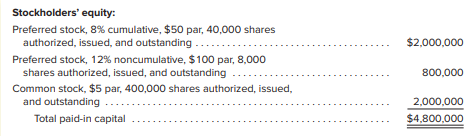 Assume that all the stock was issued on January 1 and that no dividends were paid during the first two years of operation. During the third year, Wall and Corporation paid total cash dividends of $736,000.