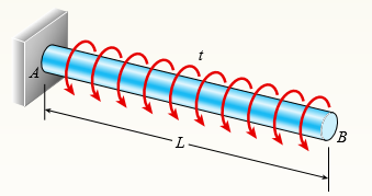 A prismatic bar AB of length L and solid circular cross section (diameter d) is loaded by a distributed torque of constant intensity t per unit distance (see figure).
