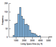 A real estate agent has surveyed houses in 20 nearby ZIP codes in an attempt to put together a comparison for a new property that she would like to put on the market. She knows that the size of the living area of a house is a strong factor in the price, and sheâd like to market this house as being one of the biggest in the area. Here are a histogram and summary statistics for the sizes of all the houses in the area.