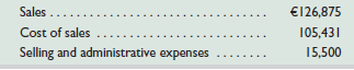 Sales ..... €126,875 Cost of sales 105,431 Selling and administrative expenses 15,500