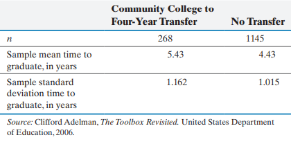 (c) Does the evidence suggest that community college transfer students take longer to attain a bachelor’s degree? Use an = 0.01 level of significance.
