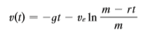 A rocket accelerates by burning its onboard fuel, so its mass decreases with time. Suppose the initial mass of the rocket at liftoff (including its fuel) is m, the fuel is consumed at rate r, and the exhaust gases are ejected with constant velocity ve (relative to the rocket). A model for the velocity of the rocket at time t is given by the equation