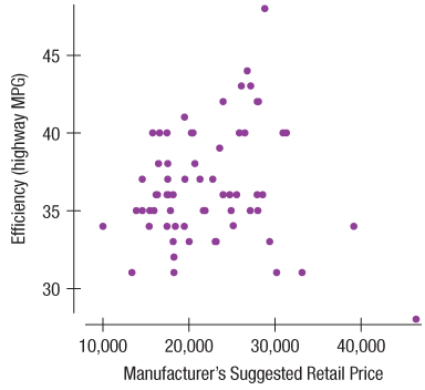 A sample of 84 model- 2011 cars from an online information service was examined to see how fuel efficiency (as highway mpg) relates to the cost (Manufacturer Suggested Retail Price in dollars) of cars. Here are displays and computer output: