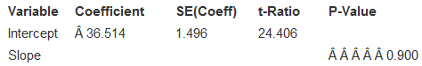 > Look again at Exercise 27 regression output for the calorie and sodium content of hot dogs. 1. The output reports s=59.66. Explain what that means in this context. 2. What the value of the standard error of the slope of the regression line? 3. Explain wh