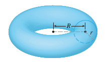(a). Set up an integral for the volume of a solid torus (the donut-shaped solid shown in the figure) with radii r and R.