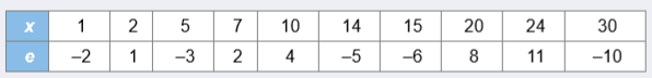 1 2 5 7 10 14 15 24 30 e -2 1 -3 2 -5 -6 11 -10 20 4.