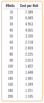 > One possible model for the manufacturing process of Exercise 17 is the following: Using this model, predict the cost per unit in a batch of 300.