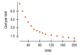 A scatterplot of Cost per Unit vs. #Units looks like this: