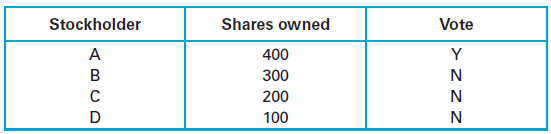 A small company has four stockholders who vote on a new advertising campaign. The number of shares owned and the vote of each stockholder are given in the table below. Does the new campaign receive a majority of the vote by shares?