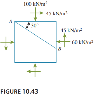 > Using the principles of Mohr’s circles for the soil element shown in Figure 10.45, determine the following. Maximum and minimum principal stresses Normal and shear stresses on the plane AB
