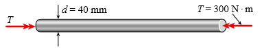 A solid aluminum bar (G = 2 7 GPa) of diameter d = 40 mm is subjected to torques T = 300 Nm? acting in the directions shown in the figure.