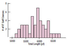 A startup company is planning to build a new golf course. For marketing purposes, the company would like to be able to advertise the new course as one of the more difficult courses in the state of Vermont. One measure of the difficulty of a golf course is its length: the total distance (in yards) from tee to hole for all 18 holes. Here are the histogram and summary statistics for the lengths of all the golf courses in Vermont.