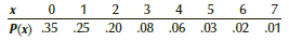 1 6. 7 P(x) 35 25 20 .08 .06 .03 .02 .01 4) 3. 2.