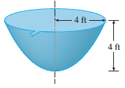 A tank full of water has the shape of a paraboloid of revolution as shown in the figure; that is, its shape is obtained by rotating a parabola about a vertical axis.