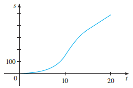 (a). The graph of a position function of a car is shown, where s is measured in feet and t in seconds. Use it to graph the velocity and acceleration of the car. What is the acceleration at t = 10 seconds?