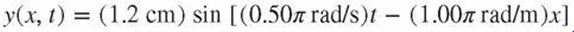 > (a) Use a graphing calculator or computer graphing program to plot y versus x for the function for the times t = 0, 1.0 s, and 2.0 s. Use the values k = (π/5.0) rad/cm and ω = (π/6.0) rad/s. (b) Is this a traveling wave?