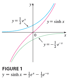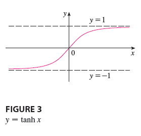 y. y= y= sinh x `y=- FIGURE 1 y = sinh x = te* –- }e* y. y= cosh x 1 FIGURE 2 y = cosh x = fe* +že=* y =1 y =-1 FIGURE 3 y = tanh x