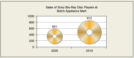 > (a) What kind of display is this? (b) Identify its strengths and weaknesses, using the tips and checklists shown in this chapter. (c) Can you suggest any improvements? Would a different type of display be better? Sales of Sony Blu-Ray Disc Players a